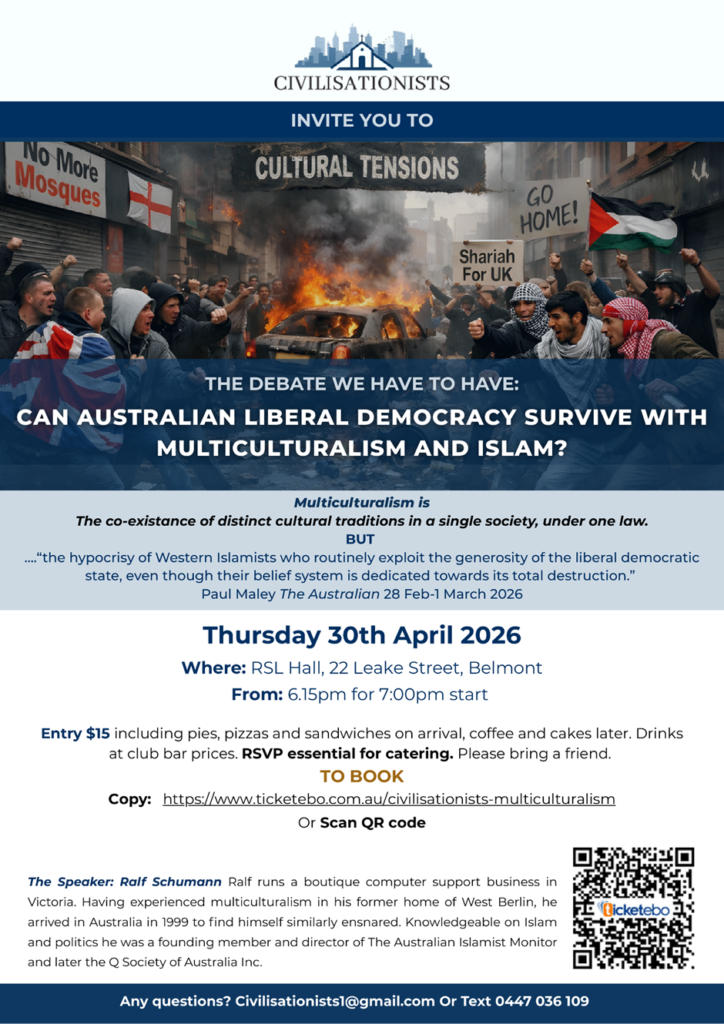 Can Australian liberal democracy survive with multiculturalism and Islam. March 27, 2026 Uncategorized Post navigation Previous Previous post: THE BEGINNING OF THE END OF THE RENEWABLE ENERGY FANTASYNext Next post: CAN AUSTRALIAN LIBERAL DEMOCRACY SURVIVE WITH MULTICULTURALISM AND ISLAM