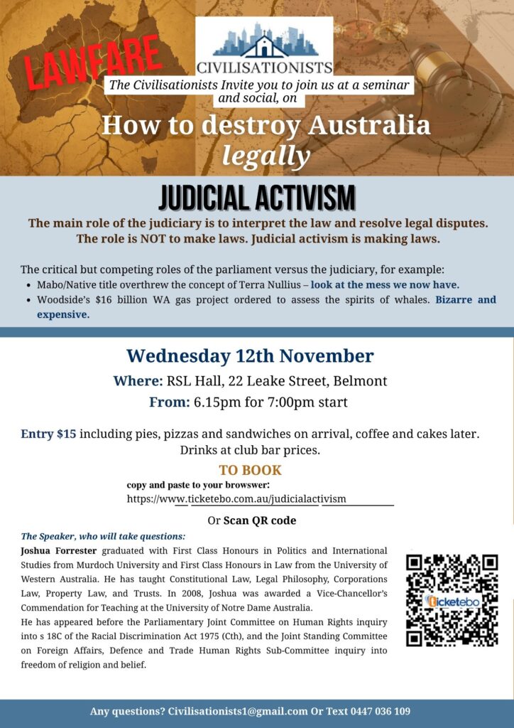 TO BOOK Scan QR or click on https://www.ticketebo.com.au/judicialactivism